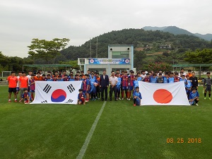そして、交流の第一歩として子供たちを対象としたスポーツ交流が計画され、現在、淡路サッカー協会と淡路島3市とが協力のうえ実行委員会を設けて、淡路トレセンU14チーム(淡路選抜)と南海郡の中学生チームとのサッカー交流事業が実施されています。